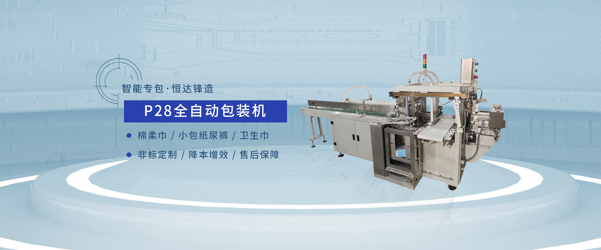 P28包裝機是專門為這些個人衛生用品設計的自動化生產設備。這類包裝機具有高效率、高精度、穩定可靠的特點,能夠滿足大規模生產的需求。